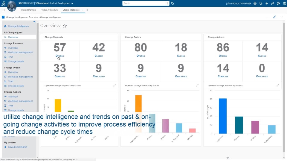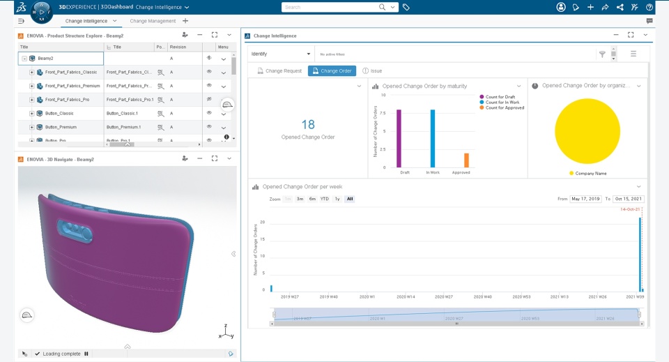 Understand the rate of change during key delivery milestones by providing a new metric Opened Change Action per week to the Engineering Cockpit page. Showcase all the objects linked with the affected item of a change request. Harmonize change icons across change intelligence application to ensure consistency across change widgets.