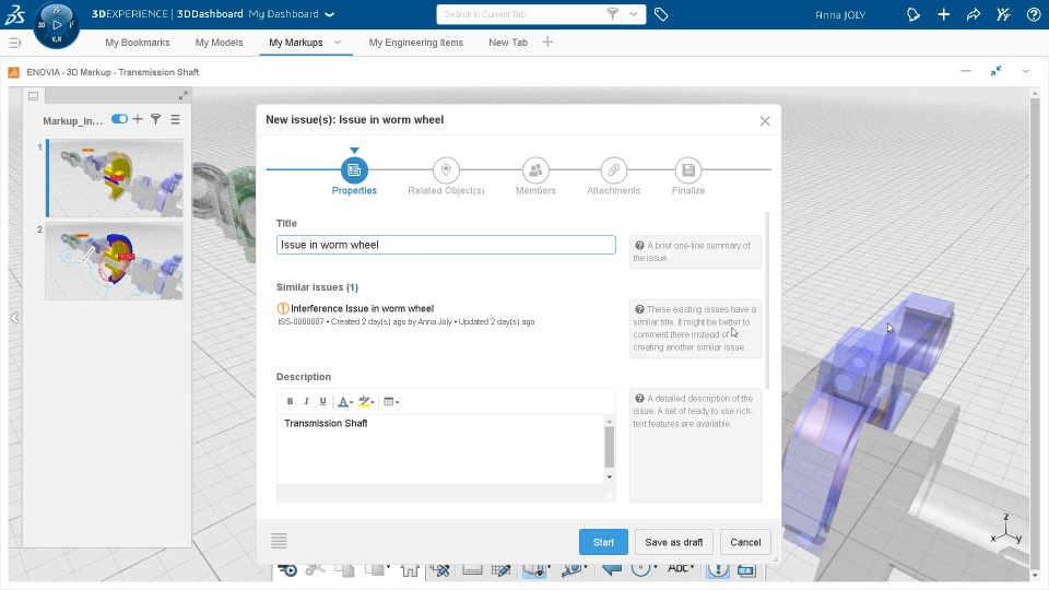 2. Interference support in 3D Markup to illustrate issues and share them through Markups