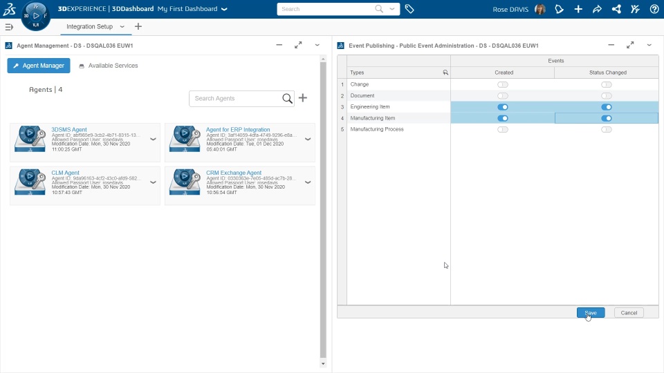 Ensure process continuity across heterogeneous data sources in the Enterprise ecosystem with the 3DEXPERIENCE Platform. New role “Enterprise Integration Architect” enables integration relying on event-based architecture for both instant operation execution (eg. External Part Number generation, based on Public Web Services) or large data imports / exports (requesting additional “Enterprise IP Exchange Manager” Role capabilities on top).