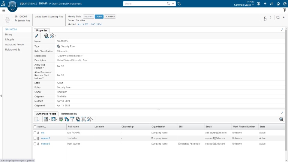Cloud support is enabled for IP Protection and IP Export Control to allow companies to protect key intellectual property and ensure compliance to governmental regulations. Extend the access model to control access to specific objects by classifying them. Then create Security Rules to control access to these objects to specific people or based upon attributes such as the physical location of the user, along with many other attributes. Additionally provide the ability to define classes and security rules on the cloud.