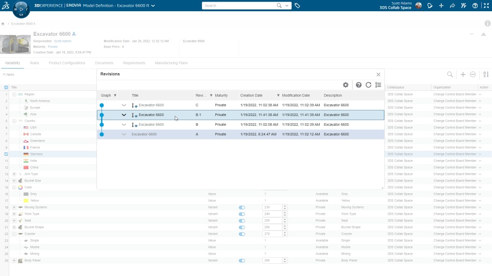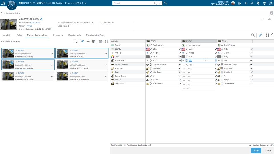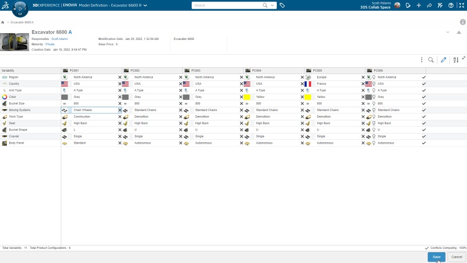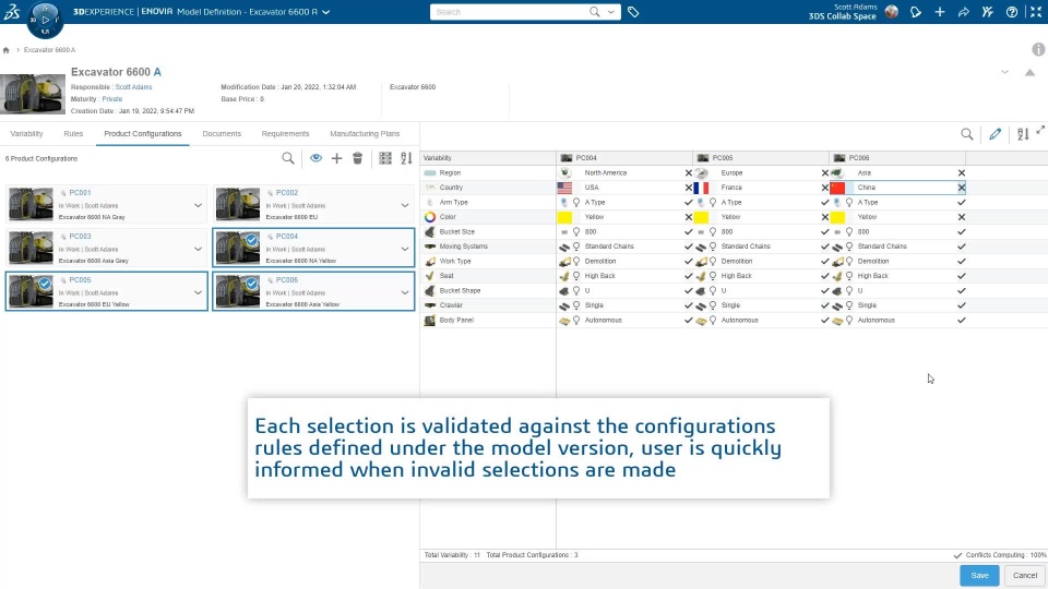 Accelerate product definition process by allowing the bulk edit on a large number of Product Configurations to optimize efficiency and speed to market. Quickly adjust product planning of model evolutions by allowing inserting new model versions in the revision chain [Functionality] Improve validity of 3D Configurator rendering of configured materials with selective loading based on camera and warning Reloading time.