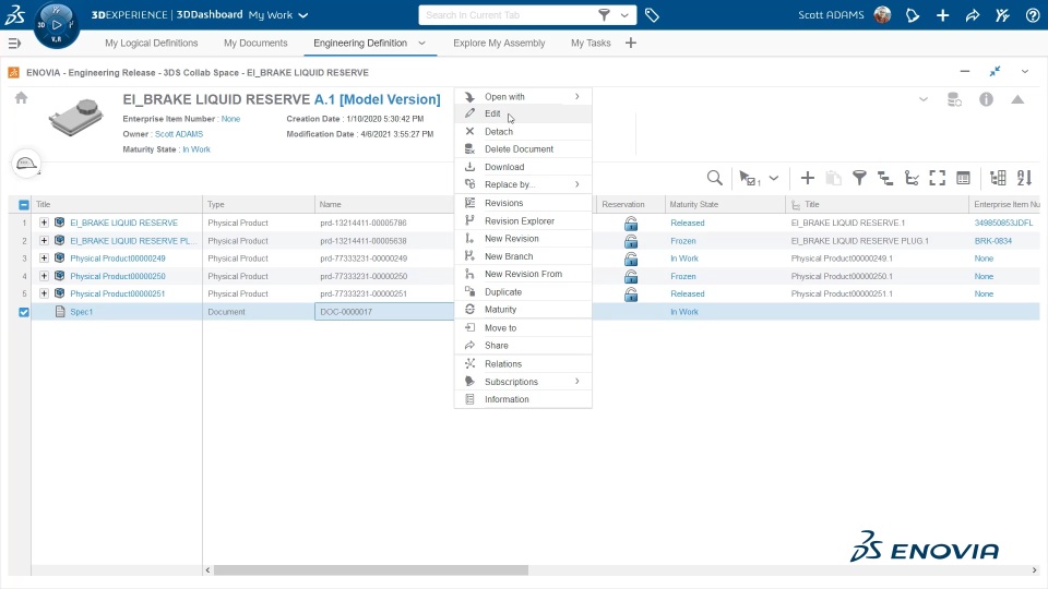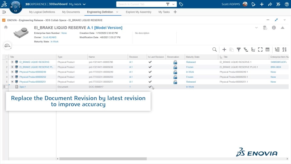 Improve the engineering process by supporting new units of volume and mass when consuming a core material. Enhance the engineering process by displaying the "is last version" information on documents, by giving the capability to replace a document by the last version or another version of the same document and by allowing to download, edit and update documents. Simplify exchange with external systems by providing a new web service to manage Engineering Item deletion.
