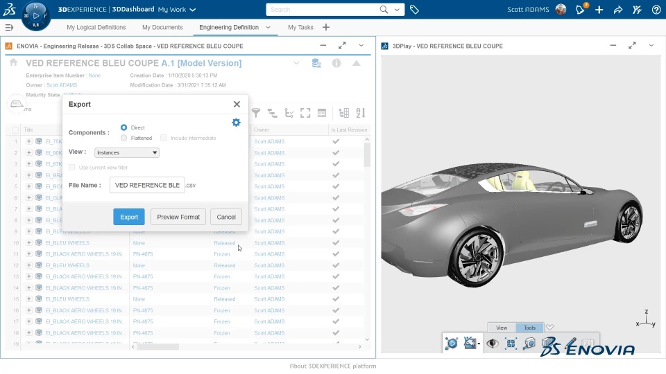 Improve the productivity of the engineer by providing a new experience when exporting the engineering definition.