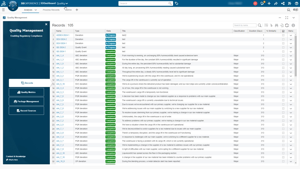 - Supports inclusion of additional data record sources for searches and analysis - for example of pre-existing quality management issues