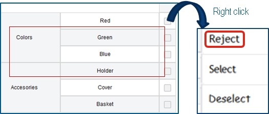 - During the effectivity definition of engineering items (variant/option group) , user can now reject certain values/options from the list instead of selecting many others