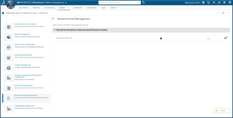 - When “Generate XVL file” is unchecked, it deactivates the generation of derived format (XVL) when an object promoted to a frozen state.