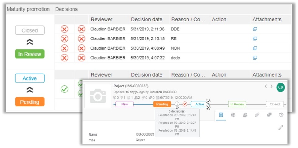 - Available on right mouse button (RMB) for effectivity edit, and selection of “Reject”
