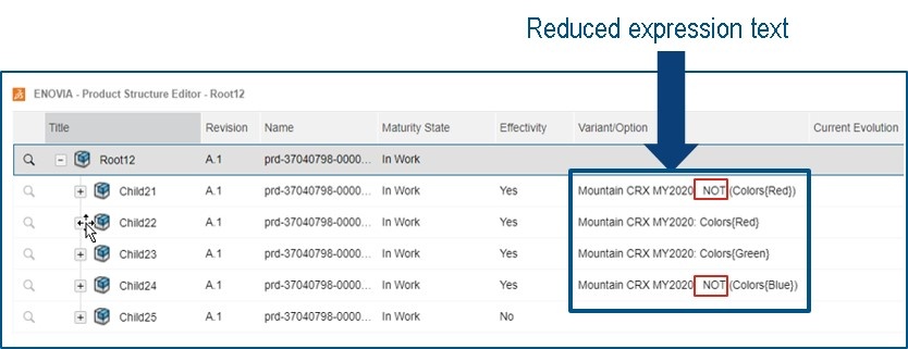 - This will eliminate the value from the effectivity definition and will be considered as “NOT” in the effectivity expression