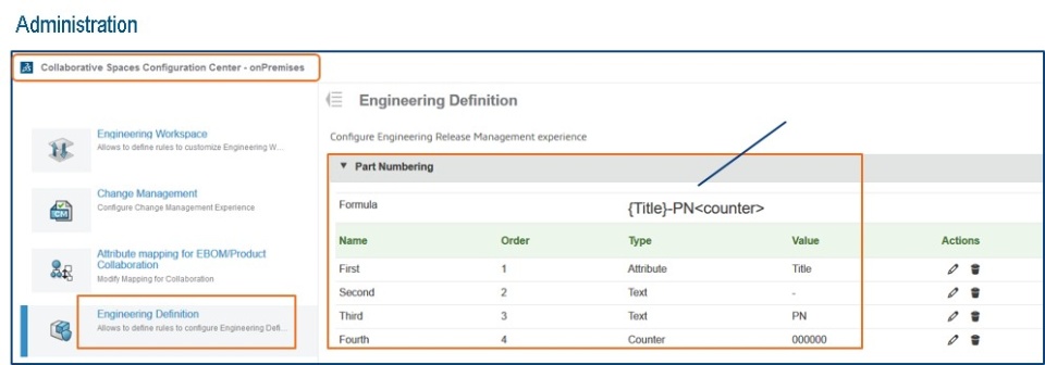 - Administrators now can define a formula for the Part number in the “Collaborative Space Configuration Center”