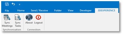- The MS Outlook ribbon will provide a single button to synchronize assigned and owned meeting from 3DEXPERIENCE to MS Outlook.