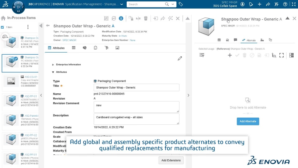 Provide capability for a specification users to add a specific quantity of a Raw Material within the product definition to provide accurate information to manufacturing and procurement