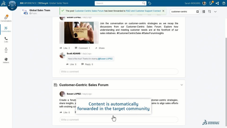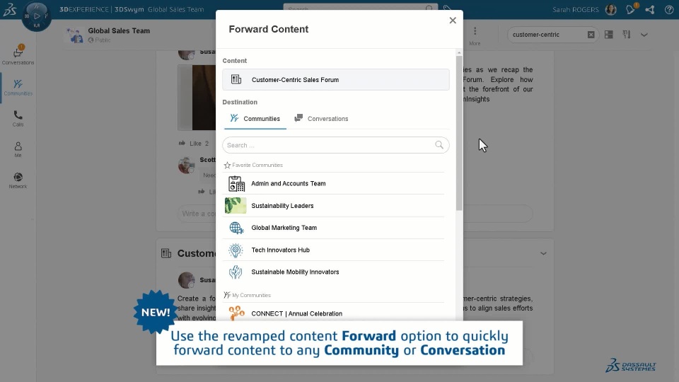 The Forward functionality offers a way to forward content from one community or conversation to another community or conversation so that broader audiences can be reached while still keeping their scope and subject.