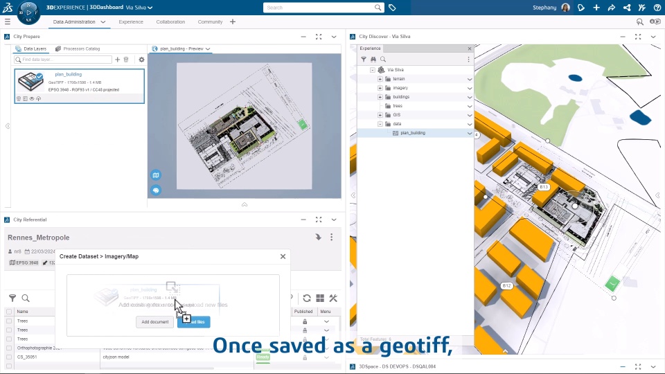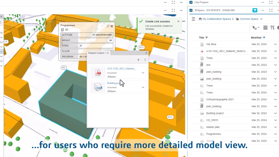 1. Enable seamless data navigation from large-scale to design-scale across all representations of a building model on the 3DExperience platform by managing links among geo-items and related PLM objects.