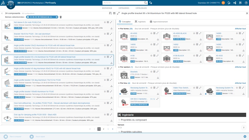 With 21xFD06 PartSupply Enterprise introduce 2 new similarity functions empowering Optimized Component Consummer (EPU-OC). As a reminder, similar search can be triggered for any component in CATIA or SOLIDWORKS or simply by drag and drop of any 3D model in PartSupply web browser.