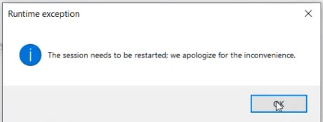 Runtime Exception: The Session needs to be restarted; we apologize for the inconvenience