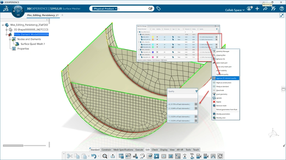 Easily generate high quality mesh with the ability to enable elements optimization from within the Mesh Part Manager