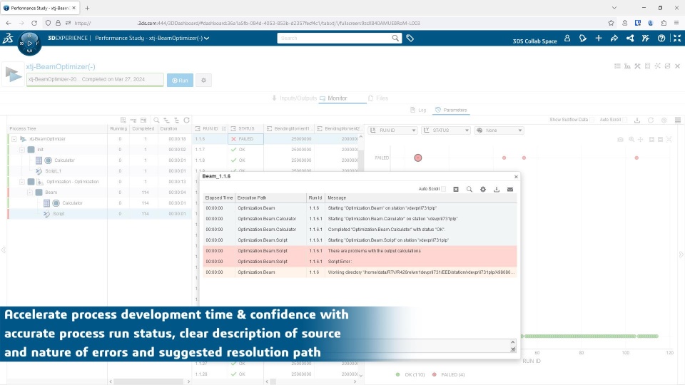 Accelerate process development time confidently with accurate process run status, clear description of source and nature of errors and suggested resolution path