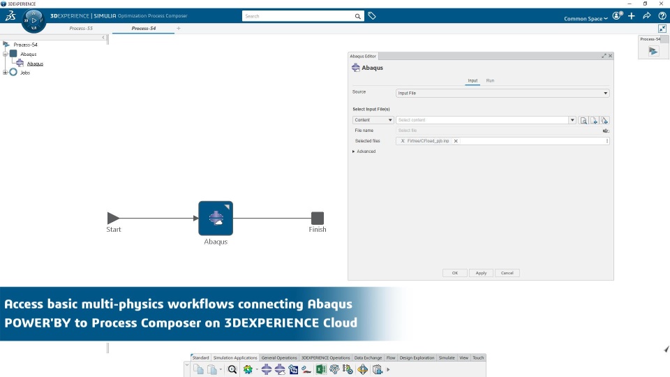 Access basic multi-physics workflows connecting Abaqus POWER'BY to Process Composer on 3DEXPERIENCE Cloud