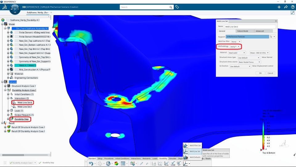 Support of the Verity fatigue method to allow line welds with shell elements durability assessment