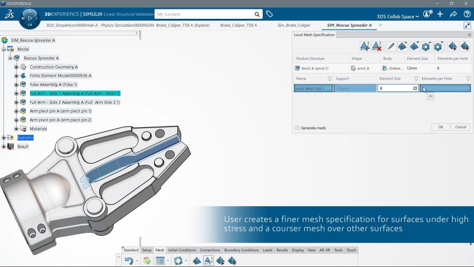 Local Mesh Specification support in Linear Structural Validation to get more accurate local stress or strain field results