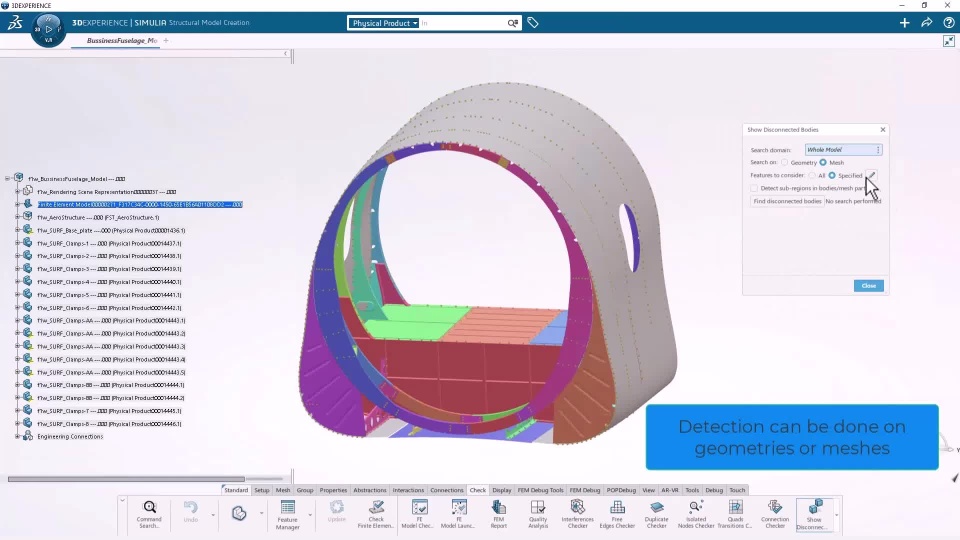 Easily and reliably identify and correct disconnected mesh parts in an assembly based on the realized connections in the model definition to simulate complex assemblies more efficiently