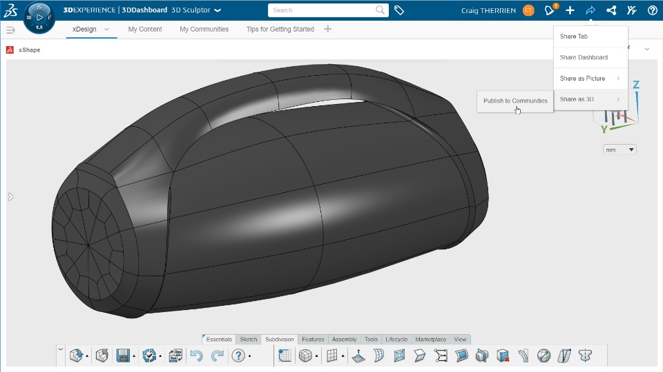 Collaborate with 3D and be productive with touch focused usability. Collaboration in 3D with a wider audience is made much easier now. You can share a Physical Product from xDesign to 3DSWYM. A member of that community can directly import published designs from 3DSWYM into xDesign. This capability enables community-wide collaboration.