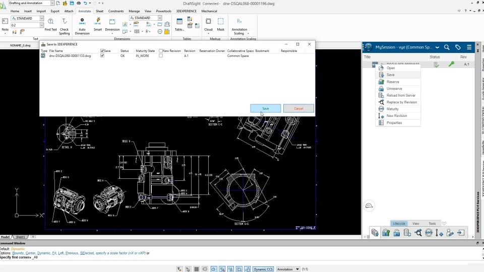 Modify DWG files checked in by the AutoCAD Connector using 3DEXPERIENCE DraftSight.