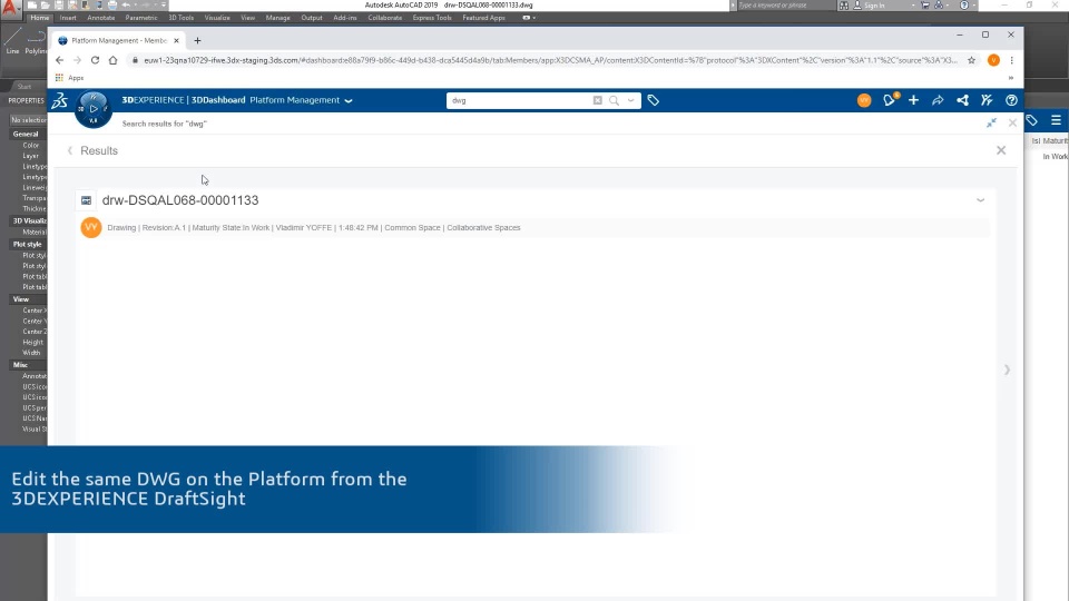 Edit in 3DEXPERIENCE DraftSight the same DWG that was checked in by the AutoCAD Connector to the Platform.