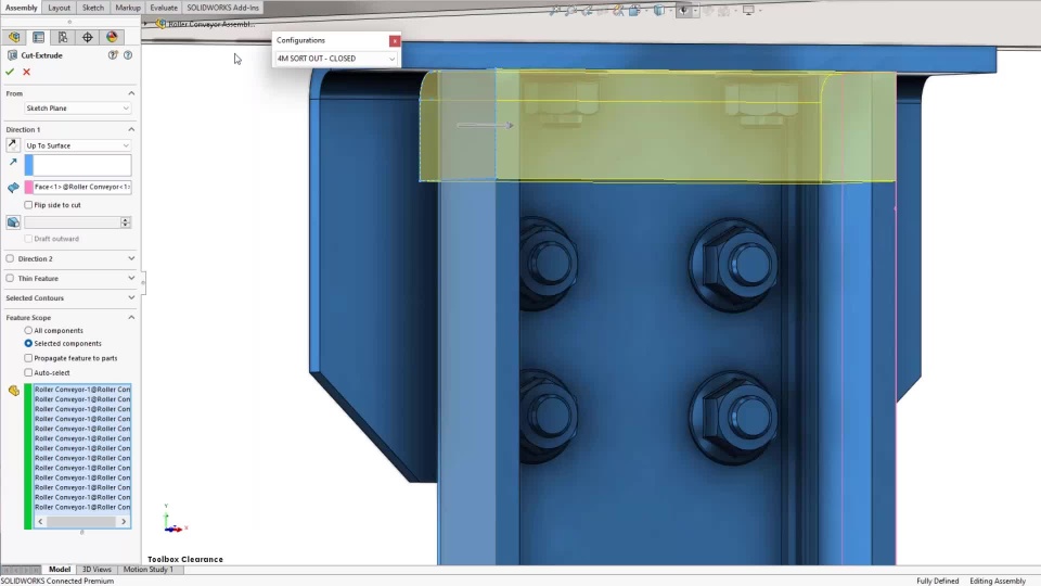 Improve assembly speed and simplify assembly design with intelligent, automated assembly mode performance selections. Speed up assembly design workflow by supporting configuration for skipped instances in assembly pattern features. Eliminate manual work and save time with the ability to automatically repair mates that lost assembly mate references. Easily control cut depth by adding more assembly level cut feature end conditions such as Up to Next and Up to Surface. Speed up assembly layout process by allowing users to suppress and unsupress individual points of magnetic mates. Easily work with large assemblies using assembly visualization there is no longer need to resolve components for properties such as mass and total weight. Speed up your downstream processes by exporting assembly components as separate STEP files.
