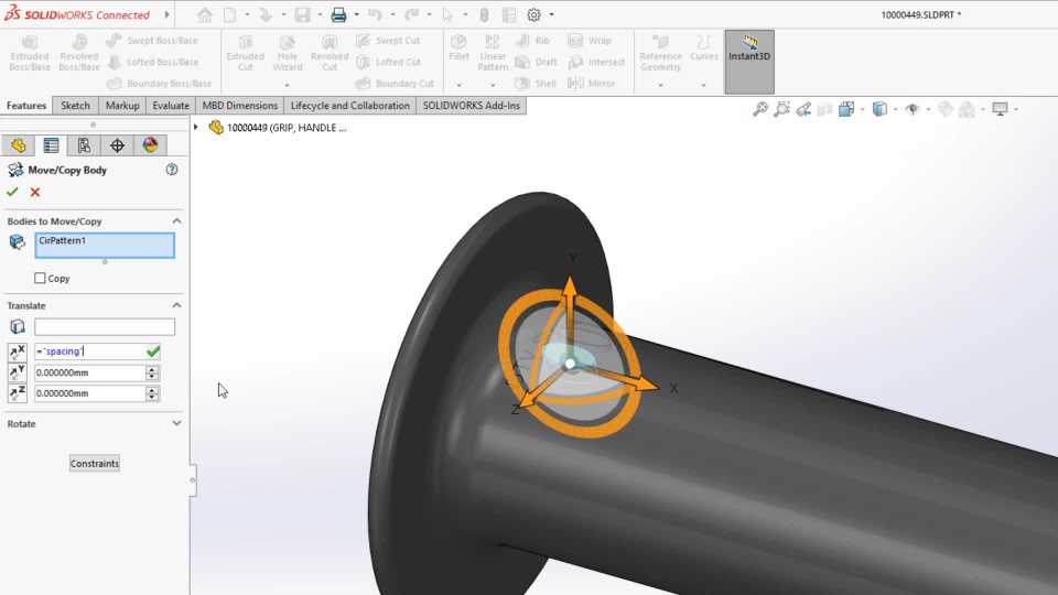 Turbocharge the copying of body geometries with the ability to control translation and rotation values with equations. Create wrap features from sketches that use single-line fonts to inscribe information such as model name. Save time when placing library feature with more flexibility while locating features.