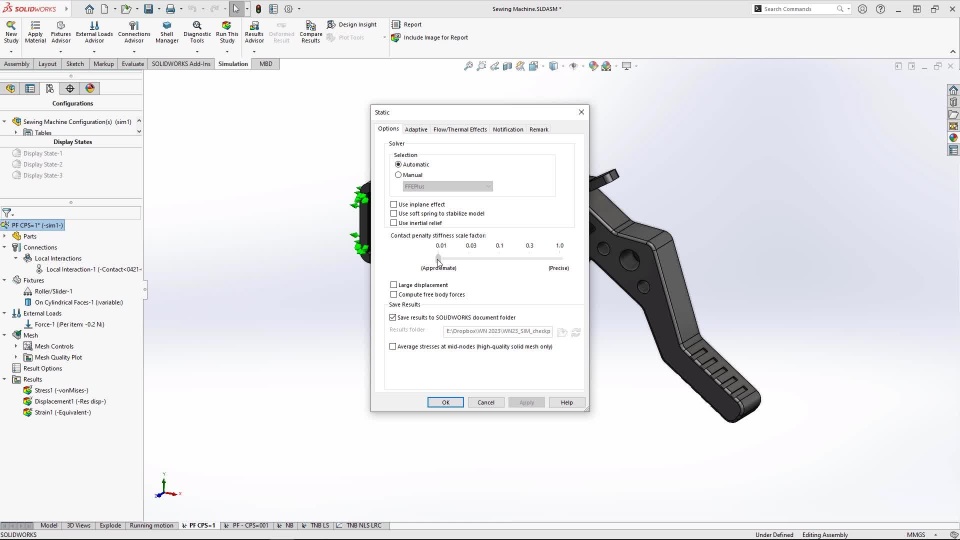 Optimize design with a new option to adjust contact penalty stiffness that speed up simulation process. Get better accuracy with an improved surface-to-surface bonding algorithm and by enforcing bonding interactions between non-touching faces at extreme angles to one another.