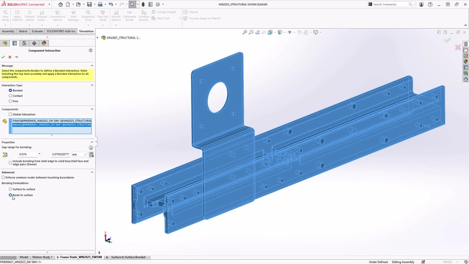 Description: Avoid gaps between surfaces in Mid Surface mesh studies. Experience enhanced offset bonded interaction to improve contact results accuracy for linear static, linear dynamic, frequency, buckling, fatigue, design scenario, and pressure vessel studies.