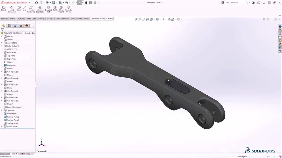 Description: By taking advantage of the power of AI, the Command Predictor predicts the tools that are most relevant based on the tools you used in the current SOLIDWORKS session.