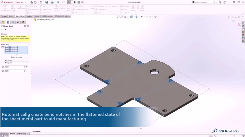 - Improve communication to manufacturing with sheet metal bend notches