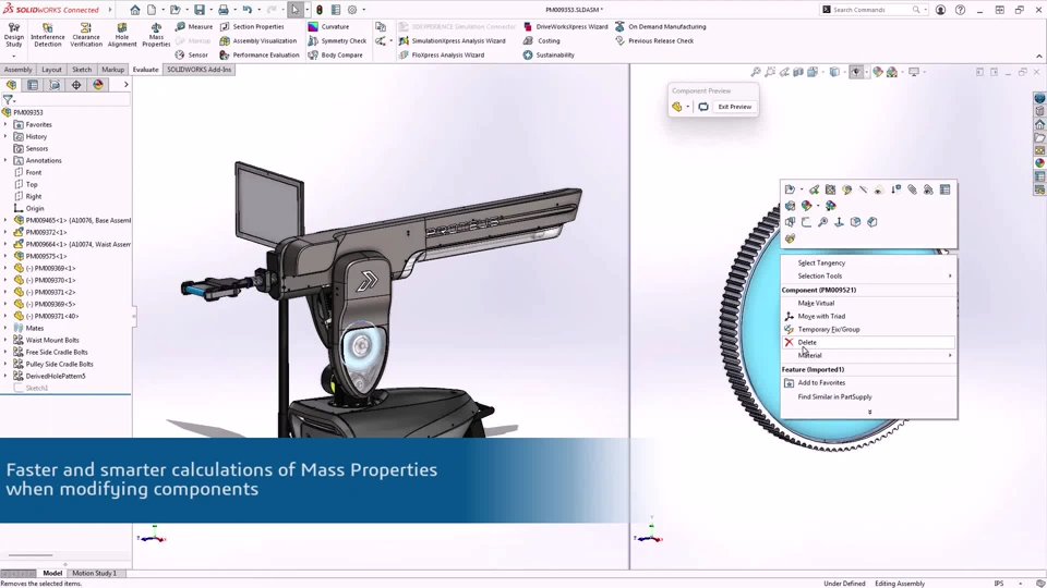 Benefit: Save time when checking Mass Properties, especially the center of gravity and weight of a large assembly.