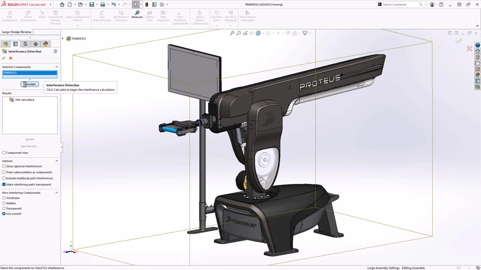 Benefit: Perform interference checks in Large Design Review mode to ensure there are no fitment issues before going to manufacturing.