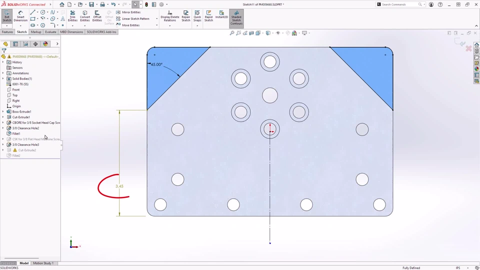 Description: When sketch relations go dangling due to missing references in your model, you can use the functionality in the Display/Delete Relations PropertyManager to repair them quickly. Use Find Replacement to fix dangling relations in a sketch. Repair All Dangling to automatically fix all dangling relations, and Auto Repair Sketch Relation or Dimension to repair the selected dangling relation from the context toolbar.