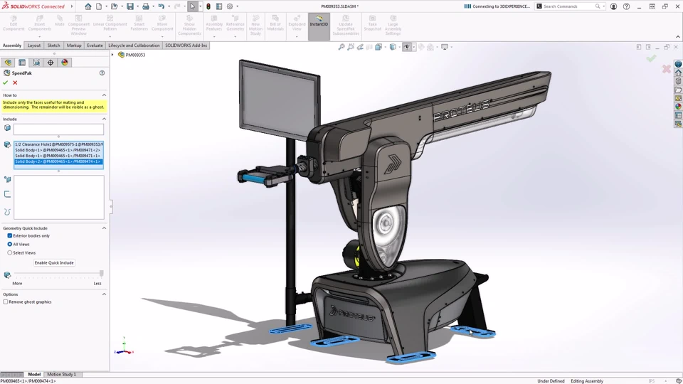 Benefit: Using a SpeedPak configuration is a great way to speed up the performance of a large assembly. Now you can create a SpeedPak configuration at the top level of an assembly, saving you the effort to create SpeedPak configurations of individual subassemblies.