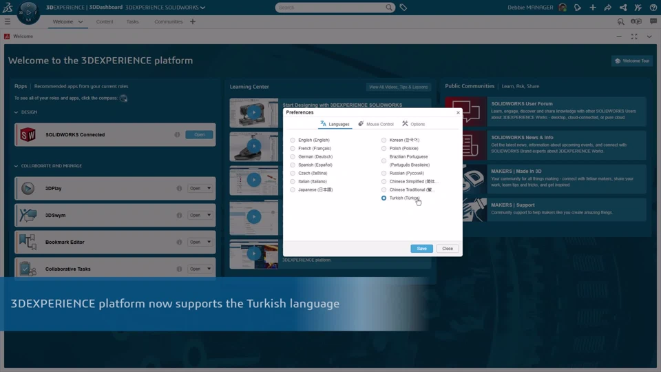 Description: Enhanced user onboarding with more intuitive and efficient workflows for Turkish-speaking users on the 3DEXPERIENCE platform.