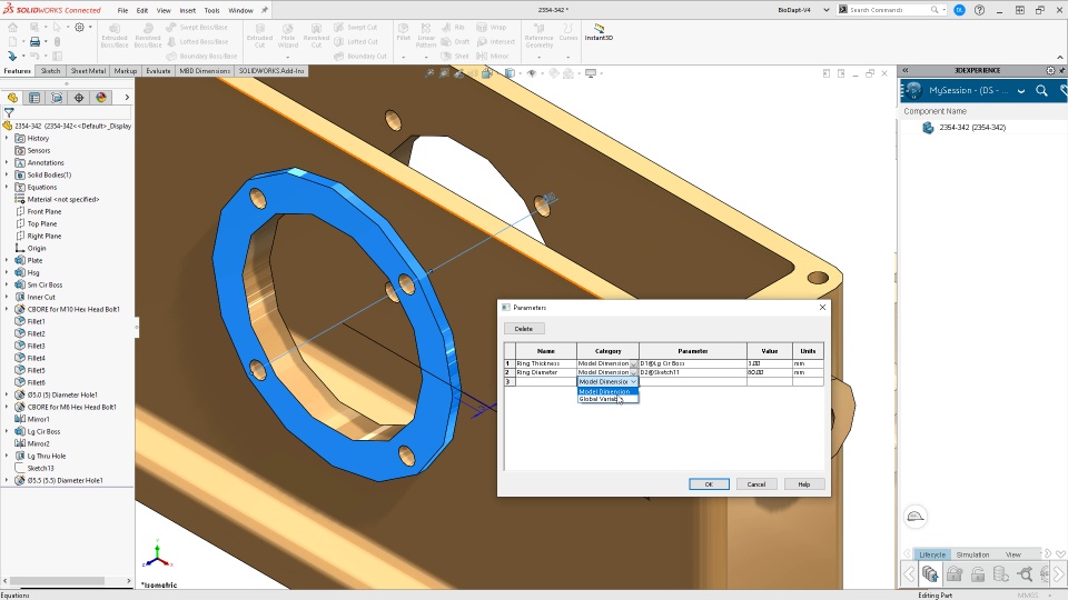 Create and expose SOLIDWORKS model parameters for use in Design Exploration Study by simulation engineers. This will allow the same models to be stressed again automatically after geometry parameters are updated. Manage library of smart parts (auto-sizing / auto-mating) and standard supplier components on 3DEXPERIENCE Platform. This streamlines the process of using platform as a single source of truth for standard components increasing reuse.