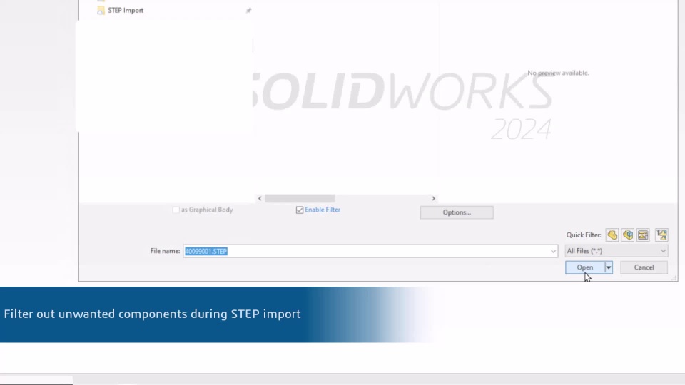 - Simplify assembly STEP file import with the ability to filter out unwanted components.