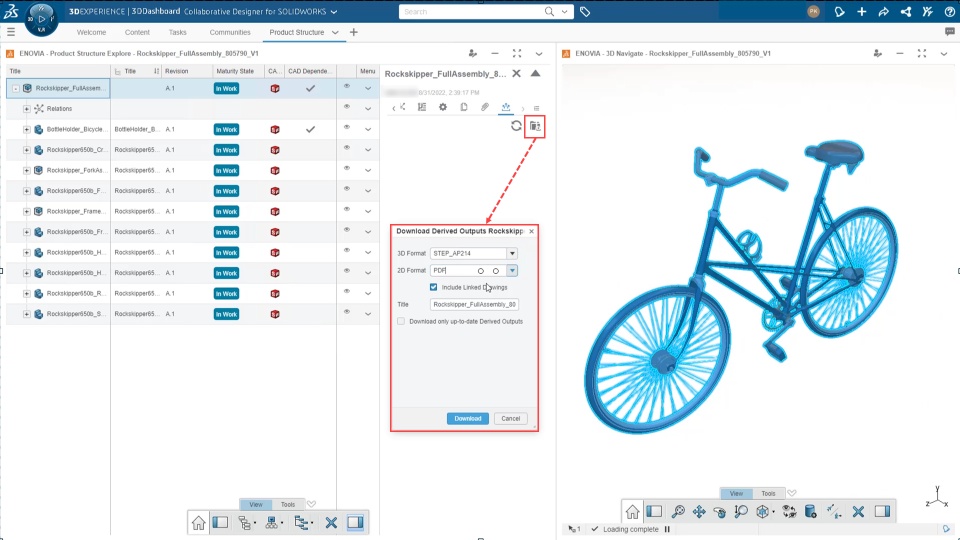 Improve collaboration by allowing user to download derived outputs of an assembly along with its drawings derived outputs.