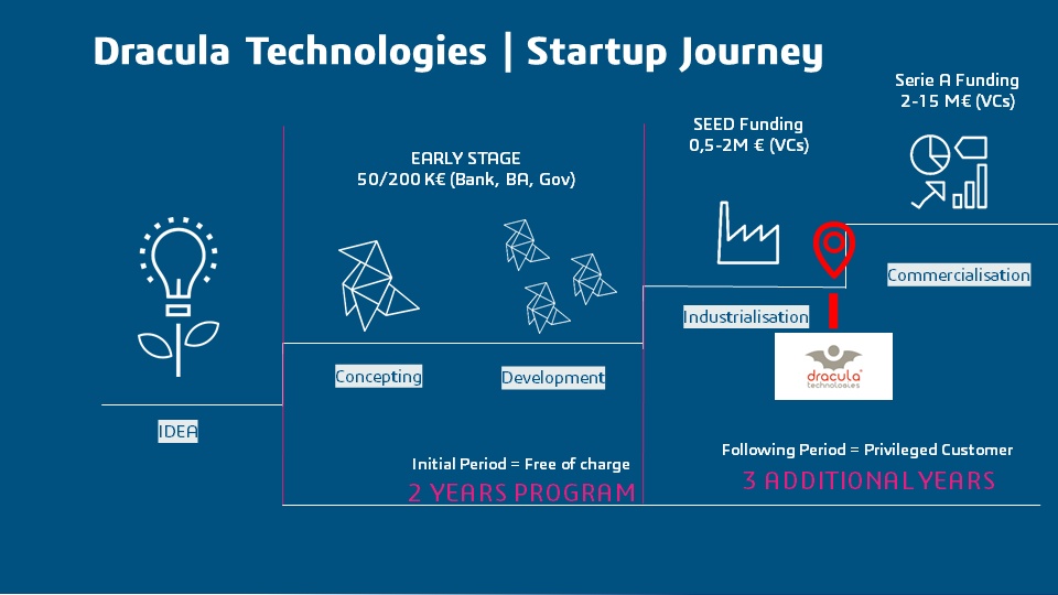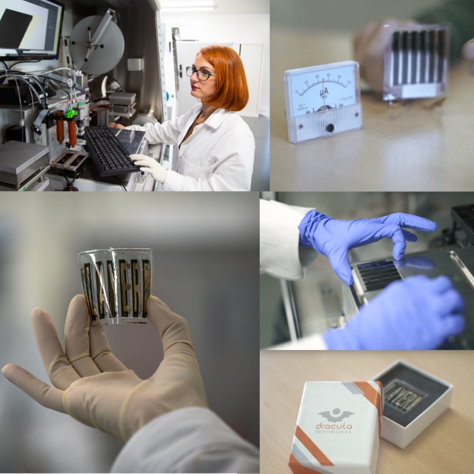 Dracula Technologies carries the French Tech in the Alps, BPI Excellence, InnoEnergy, Dassault Systèmes and Airbus labels. Their technology has led to several patents and relies on the mastery of an OPV cell manufacturing process using digital printing to trap light both outdoors and indoors.