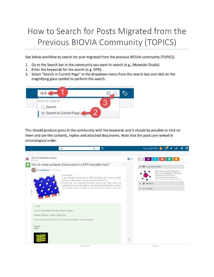 Attached document detailing how to search for posts migrated from the previous BIOVIA Community.