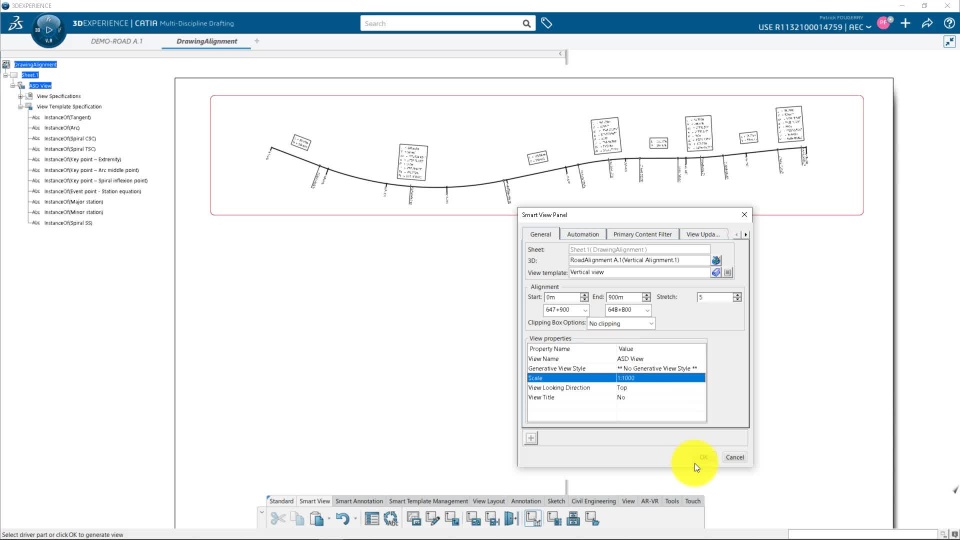 Tutorial showing how to create an alignment drawing with Multidiscipline Drafting application. A batch is also available in an additional role to generate automatically all the sheets for an alignment.