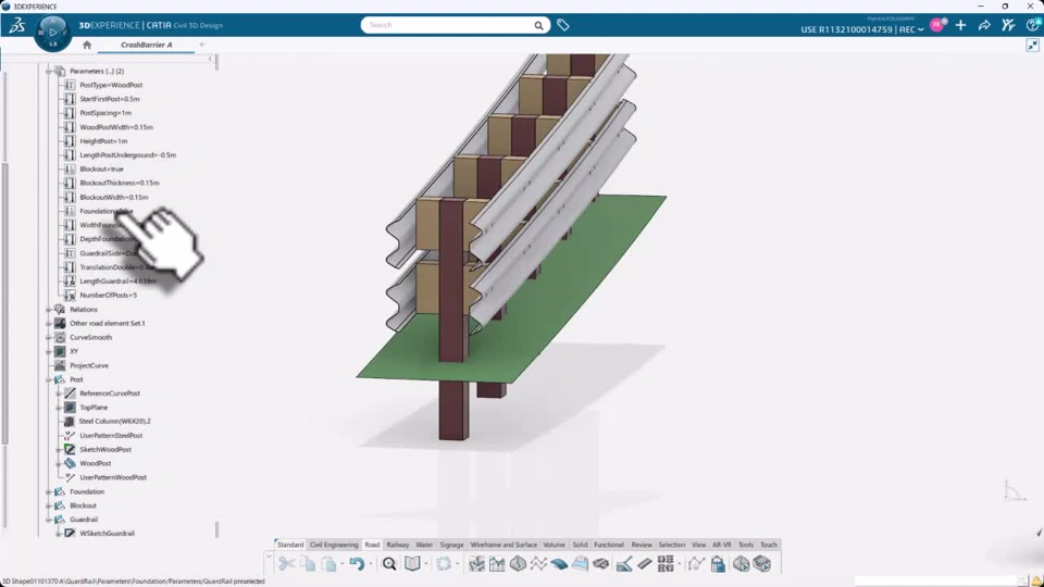 Powercopy of a parametric highway crash barrier to be instantiated on a curve.