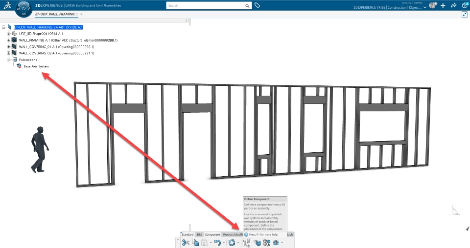 In it's current implementation, the wall will automatically pass the inputs from the wall feature to the Object Type components. As a reminder, both the UDF and the ET need to have the same inputs, with the exception that the ET needs a 'Base Axis System' publication as well. The Base Axis System publication needs to be created with the 'Define Component' command in the Building & Civil Assemblies application.