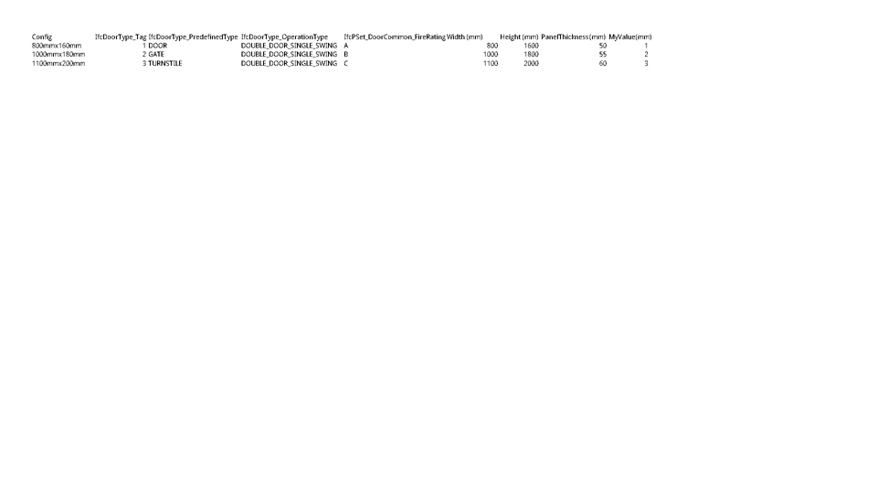 - IfcDoorType_Tag in second column to make the PLM mapping work