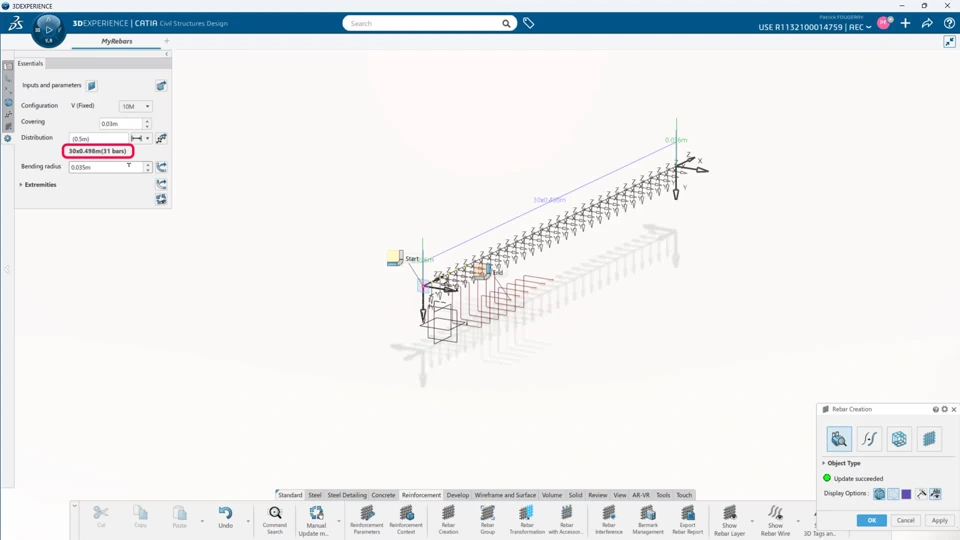 Introduction to the rebar functions : creation of fixed parametric bars, pattern of bars and strap mode.