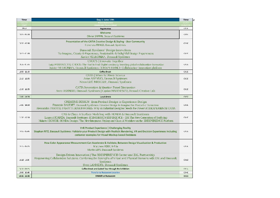 Agenda for the first day of the CATIA Creative Design & ICEM Days (June 13)